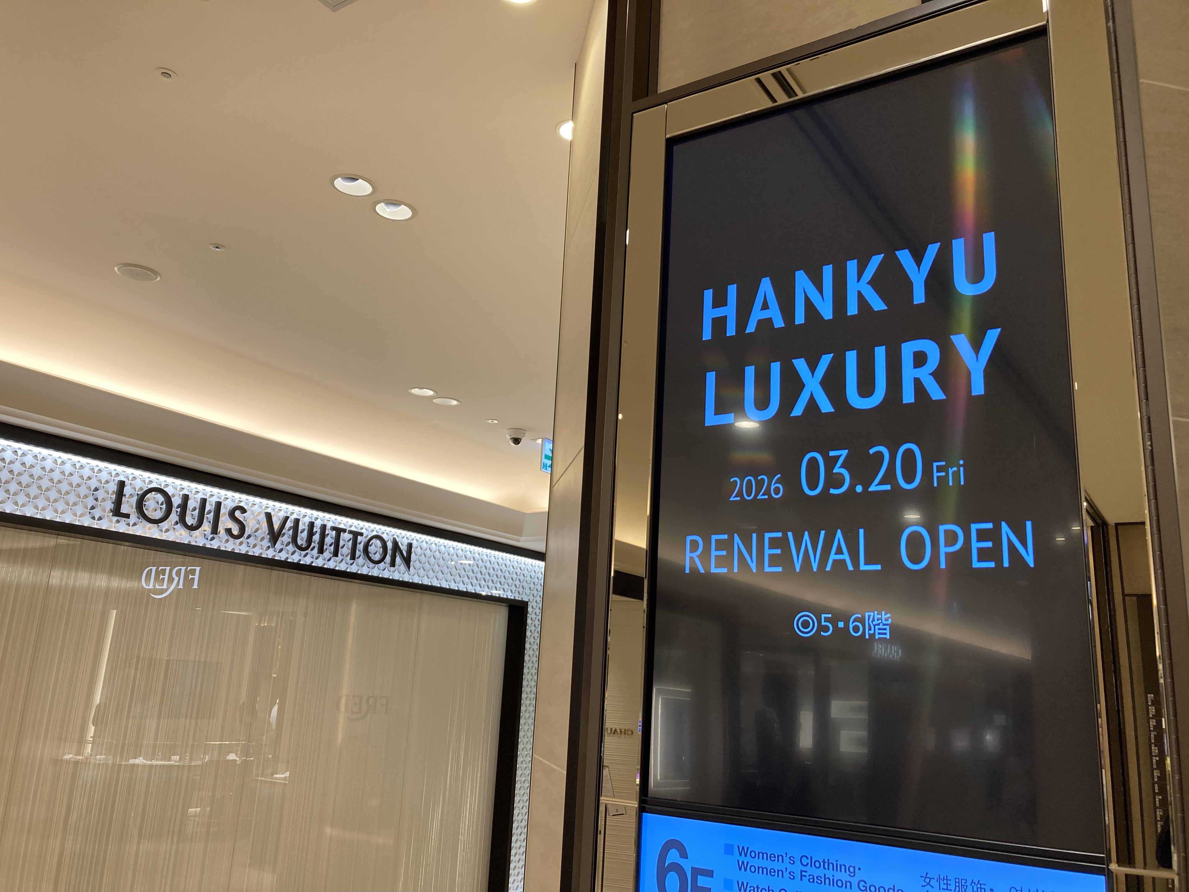 内容:5・6階「HANKYU LUXURY」リニューアルオープン(2026年3月20日) 出典:阪急うめだ本店 公式サイト (https://website.hankyu-dept.co.jp/honten/h/luxury_renewalhttps://www.hankyu-dept.co.jp/)